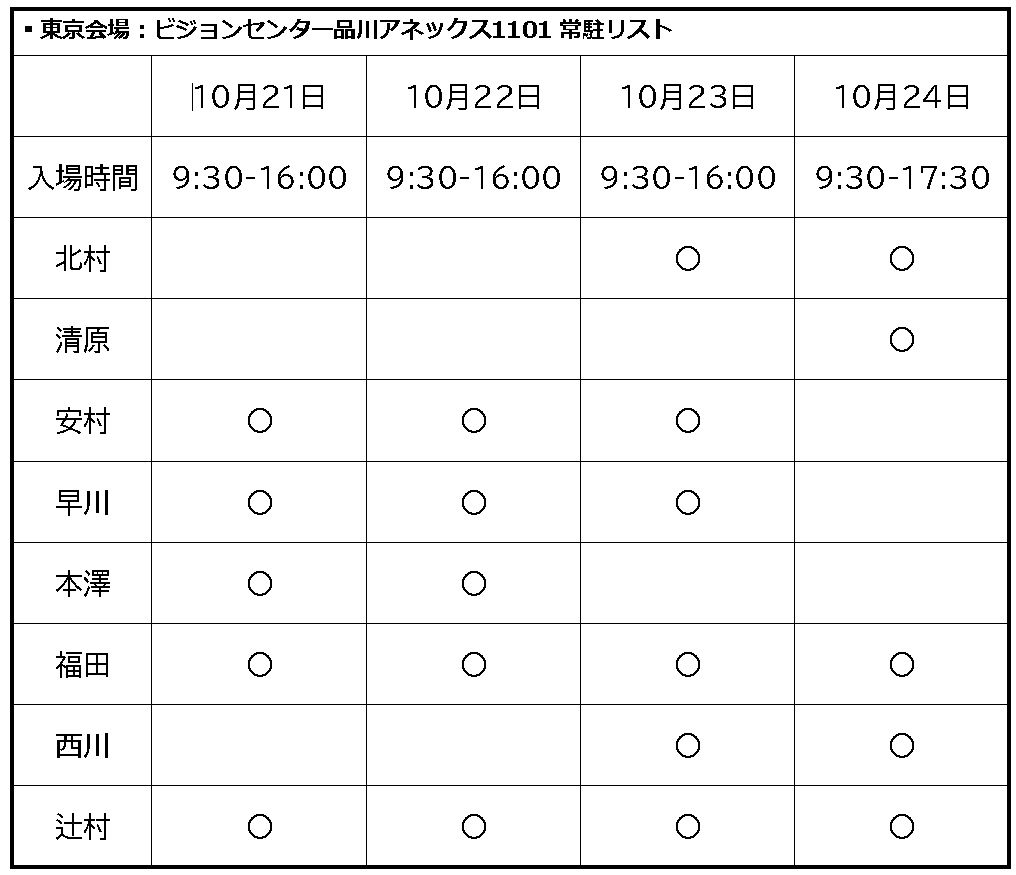 ※大阪会場につきましては、10/30(木)までに公開いたします。